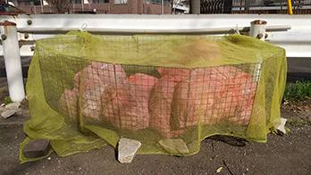 - 通常の目の細かいカラス防御用ネットを被せてしまえば、中身はよく分からないし、ゴミネット自体がカラスの侵入を防ぐようです。